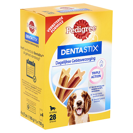 Bij dagelijks gebruik van de Pedigree Dentastix kan de vorming van tandplak met 80% verminderen. Door de speciale vorm is het goed voor tanden én tandvlees.