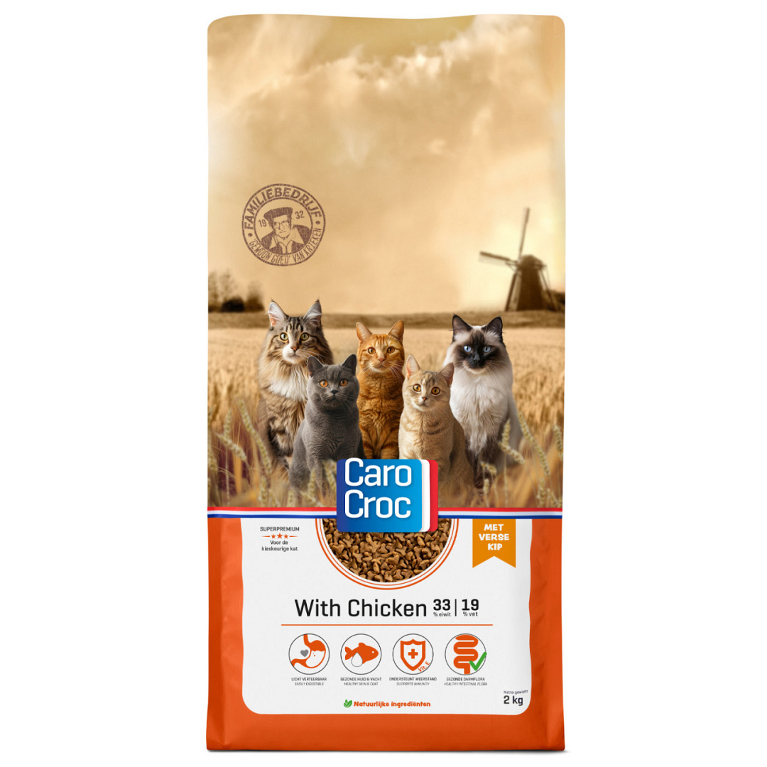 CaroCroc With Chicken bevat een hoog aandeel gevogelte (36%), is zeer smakelijk en licht verteerbaar. Het bevat alle voedingsstoffen die je volwassen kat nodig heeft.