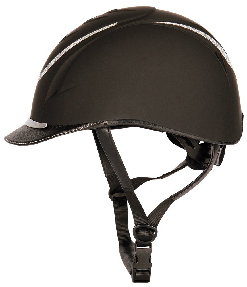 Verstelbare rijhelm met lederen en chique sparkle decoratie. Met uitneembare voering en meerdere ventilatiesleuven voor een goede luchtstroom.